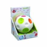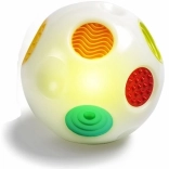 Při kutálení se míček rozzáří a zahraje veselé melodie, které motivují děti k pohybu. Když se zastaví, vysloví názvy barev v angličtině – hravou formou tak rozvíjí jazykové dovednosti a podporuje vnímání barev.