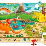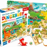 Součástí jsou také aktivity pro chytré hraní: hledání vybraných předmětů na obrázku posiluje bystrost a soustředění, zatímco umístění žetonů u skupin dinosaurů podporuje učení počítání do pěti. Puzzle jsou ideální pro předškoláky – kombinují zábavu, učení a rozvoj jemné motoriky v jednom.