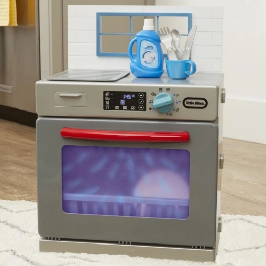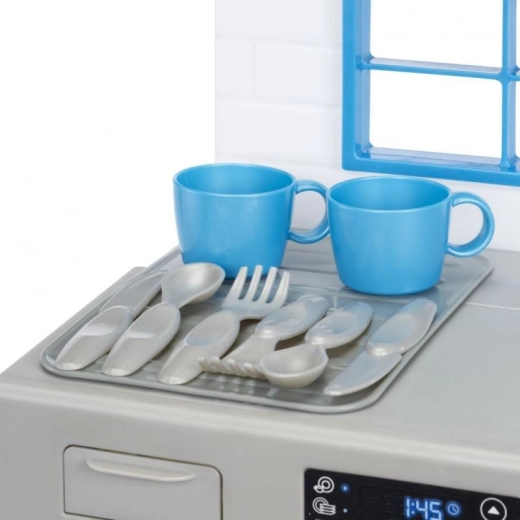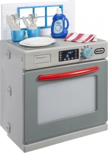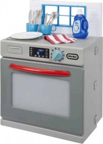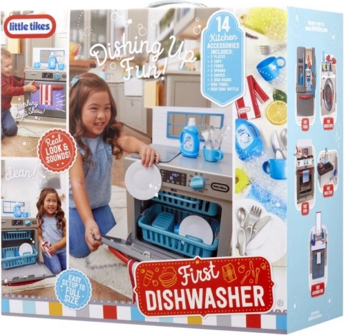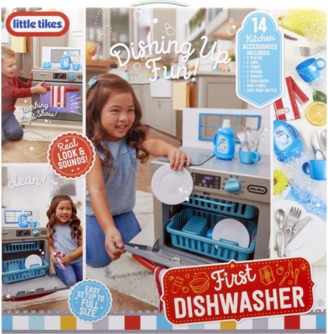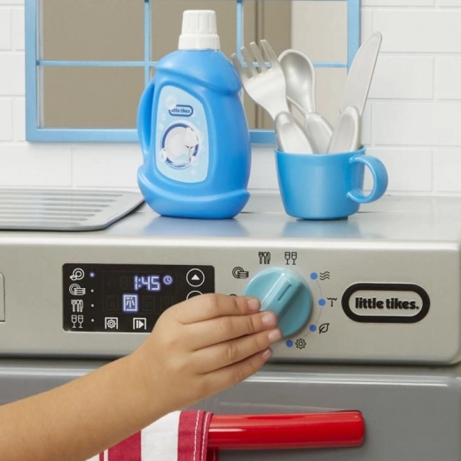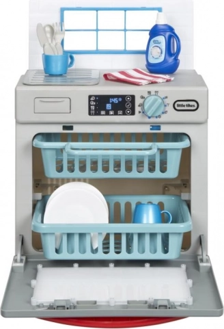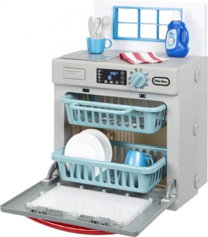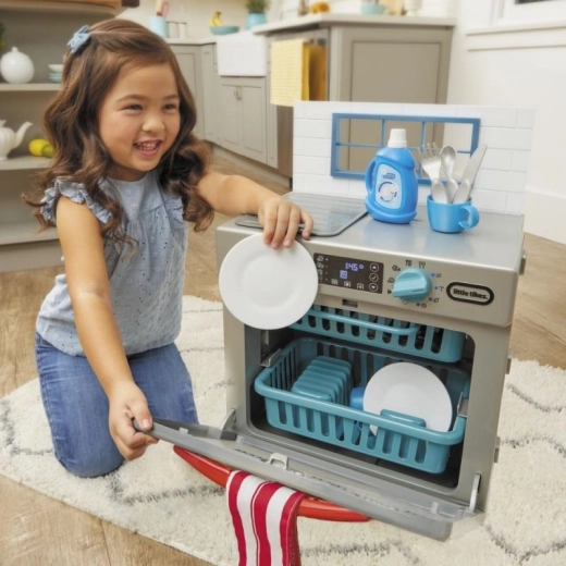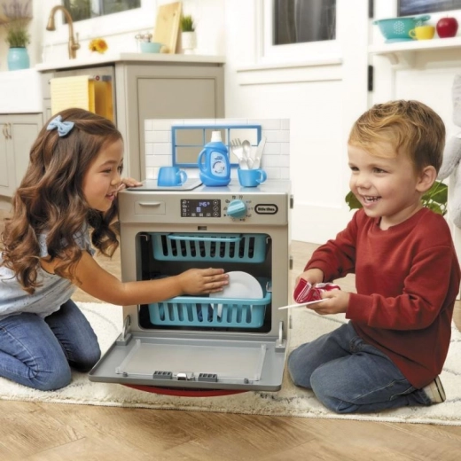 Malí pomocníci si zamilují realistické provedení šedé myčky s červenými akcenty, která vypadá jako skutečné spotřebiče. Po přidání „prostředku“ a otočení funkčním ovladačem se rozsvítí světlo a spustí autentické zvuky mytí. Děti mohou otevírat dvířka, vysouvat koše a nakládat či vyndávat nádobí, čímž rozvíjejí motoriku a představivost.