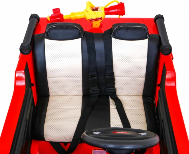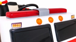 Bezpečnost je na prvním místě: dálkový ovladač 2.4 GHz s funkcí Stop, pomalejší rozjezd, otevírací dveře se zámkem a dvoumístné sedadlo z eko kůže s dvojitými bezpečnostními pásy chrání vaše malé hasiče. Díky bohaté výbavě a audio panelu (MP3/USB/SD/AUX) je auto skvělé pro kreativní hru i rozvoj motoriky.