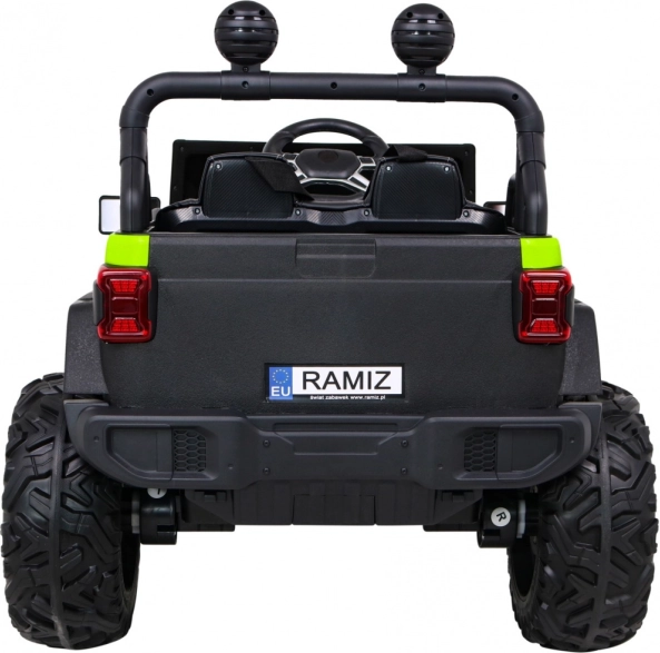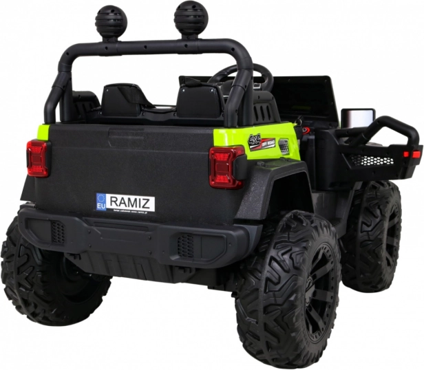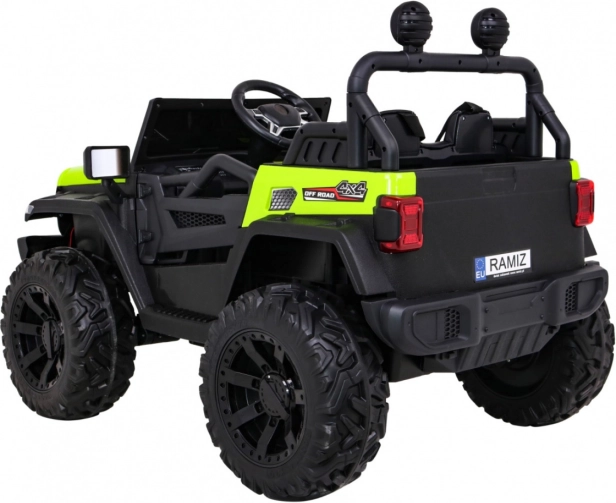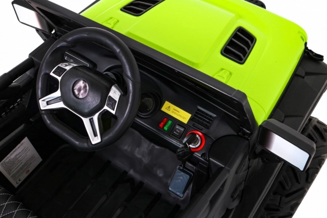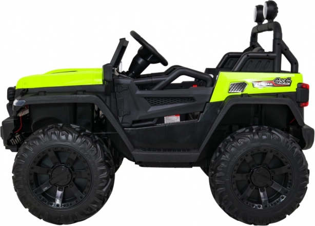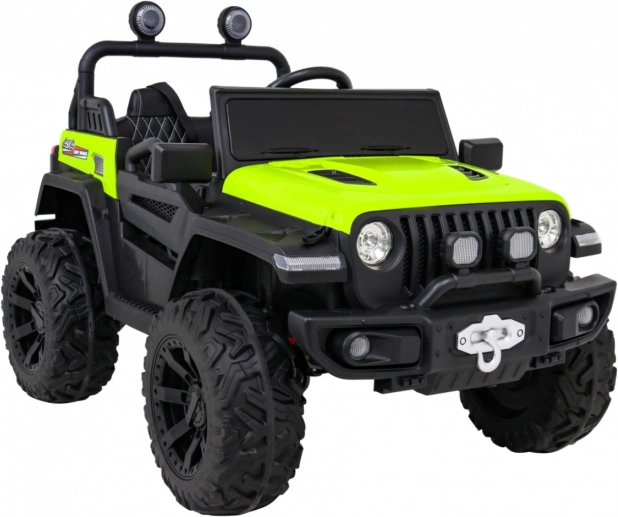 Robustní dětské elektrické auto do terénu se silou 4×35 W, přepínatelným náhonem 2×4 / 4×4, velkými EVA koly a baterií 12 V / 10 Ah. Nabízí plynulý rozjezd, LED světla, dálkové ovládání 2,4 GHz s bezpečnostním tlačítkem Stop a bohaté audio funkce (MP3/USB/SD/Bluetooth). Dvě sedadla z větrané eko kůže a bezpečnostní pásy zajistí pohodlí i bezpečí.