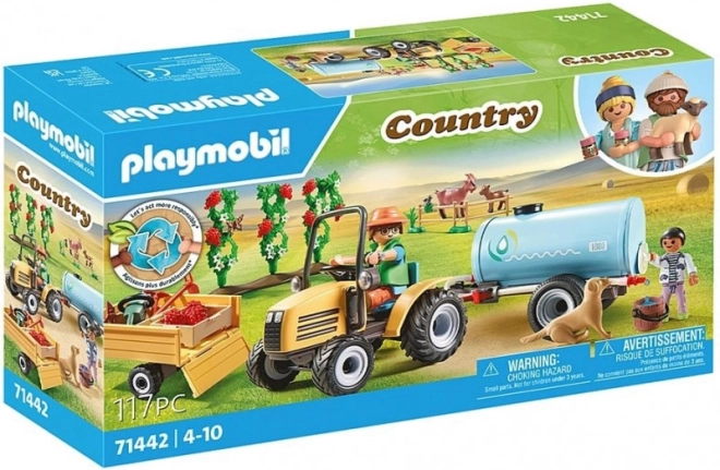Objevte svět farmářství s Playmobil Country Traktorem s Cisternou! Tato sada je perfektní pro všechny děti od 4 let, které chtějí prozkoumat zábavu na venkově. Hračka umožňuje vytváření vlastních příběhů - od sběru plodin po jejich přepravu do bezpečí domova.