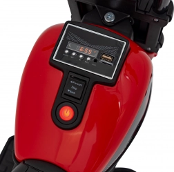 Stylová dětská motorka chopper FASTER nabídne malým jezdcům spoustu zábavy a bezpečí. Disponuje elektrickým pohonem 20 W, 6V/4,5Ah akumulátorem, LED světlomety a bohatým audio panelem (FM rádio, MP3, SD, Bluetooth, USB, AUX). Stabilní plastová kola a pomocná kolečka zajistí snadnou jízdu vpřed i vzad, měkké sedlo a realistické zvuky startu motoru pak dotvářejí autentický zážitek.