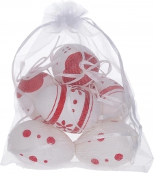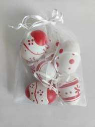 Dekorační malovaná plastová vajíčka o velikosti 6 cm jsou ideální pro vaše sváteční dekorace. Získáte 6 kusů v elegantním organza sáčku.