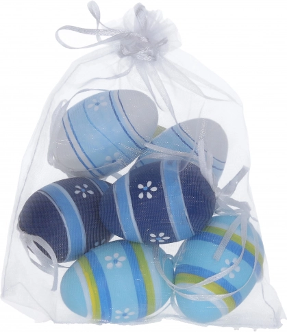 Dekorační plastová vajíčka, která zkrášlí váš domov. Každé vajíčko měří 6 cm a balení obsahuje 6 ks v elegantním organza sáčku.