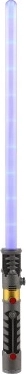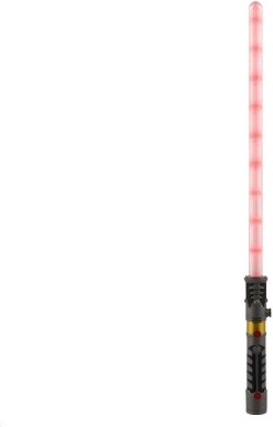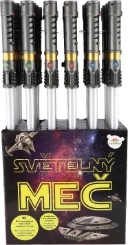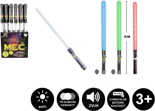 LED čepel září a zvuk se mění podle pohybu. Při zasažení cíle meč vydá efekt a rozsvítí se, takže akce působí živě a napínavě.