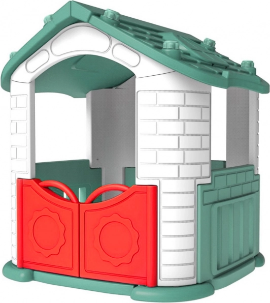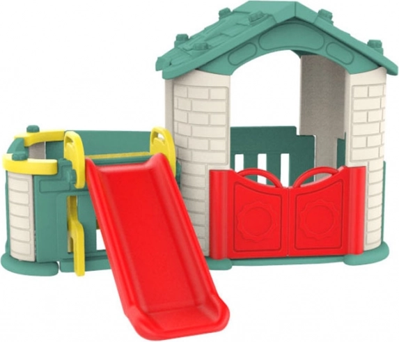Domeček nabízí velkou herní plochu se širokými otevíracími dveřmi. Dvouvrstvá skluzavka a robustní schody poskytují bezpečnost a stabilitu při hře. Dům obsahuje předzahrádku ohraničenou plotem a vstupem do domečku, která přidává další prostor pro kreativní hraní.