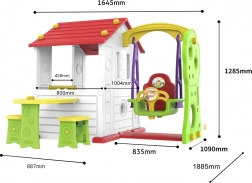 Plastový domek poskytuje velký vnitřní prostor pro volnou hru, včetně velkých otevíratelných dveří a bezpečné dvouvrstvé houpačky. Konstrukce je také vybavena bezpečným stolkem a židlemi. Možnost demontáže zahrádky a přidání další stěny zvyšuje variabilitu a přizpůsobivost domku.