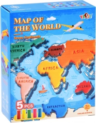 Tato umělecká sada je ideální pro děti, které milují výtvarné aktivity. Rozvíjí manuální zručnost, fantazii a kreativitu. Sada vám umožní nejen vytvářet tvary světadílů, ale také se naučit jejich názvy v angličtině a rozšířit si tak geografické znalosti.
