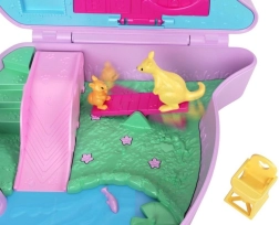 Kapesní herní svět Polly Pocket v roztomilé kabelce ve tvaru klokana přináší skládací domeček plný mini pokojíčků, zábavných prvků a zvířecích kamarádů. Díky ramennímu popruhu je set snadno přenosný a ideální na cesty. Uvnitř najdete skluzavku, houpačku, bazének, tajné vejce s tučňákem i doplňky pro péči o zvířátka – o hraní a fantazii nebude nouze.