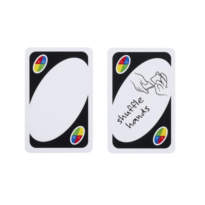UNO je nadčasová karetní hra, kterou se naučíš během minuty a budeš ji milovat roky. Cílem je zbavit se všech karet přikládáním podle barvy nebo čísla a chytře využívat akční karty, které převrátí hru ve tvůj prospěch. Nově přibývají 3 přepisovatelné divoké karty, se kterými si můžeš nadefinovat vlastní pravidla a dodat každé partii čerstvou energii.