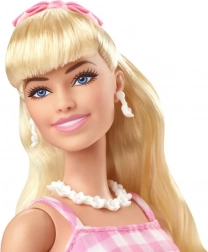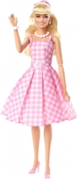 Tato filmová panenka BARBIE vyniká nadčasovým stylem a detailním provedením. Má dlouhé blond vlasy svázané růžovou stuhou, které dolaďují náušnice a náhrdelník se sedmikráskami. Růžovo-bílé kostkované šaty ve vintage stylu zdůrazňuje plisovaná sukně a pásek, zatímco růžové lodičky na podpatku dodávají outfitu šmrnc.