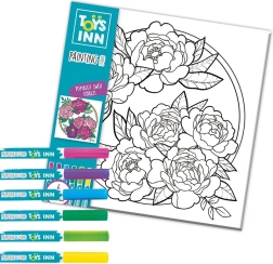Objevte zábavný kreativní set pro děti – obrázek k vybarvování s fixy na plátně 29 × 29 cm. Díky 6 barevným fixům vytvoří vaše dítě originální a barevný motiv květin, rozvíjí jemnou motoriku, kreativitu a trpělivost.
