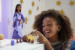 Objevte svět přání s detailně zpracovanou panenkou Asha v dlouhých fialových šatech a s jemně spletenými vlasy. Sada je inspirována animovaným filmem Disney Wish a přináší dětem spoustu možností pro imaginativní hru – od vyprávění příběhů až po stylování a doplňování outfitů.