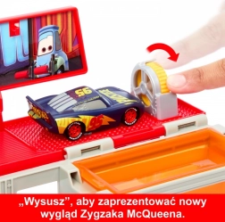 Proměňte vzhled svého Bleska McQueena během chvilky! Tato mobilní lakovna v červeném kamionu Maník nabízí hned několik způsobů, jak autíčku změnit barvu – postřikem z „lakovací“ lahvičky, ponořením do dvou nádrží a následným vysušením ve druhém patře. Autentické filmové detaily a kreativní herní prvky přinášejí dlouhé hodiny zábavy doma i na cestách.