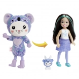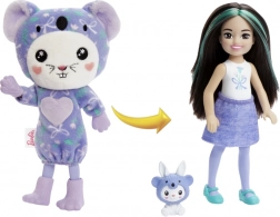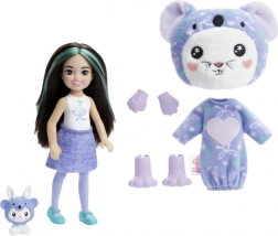 Panenka Chelsea z řady Barbie Cutie Reveal přichází v heboučkém kostýmu králíčka převlečeného za koalu – stačí sundat kostým a odhalíte panenku s dlouhými vlasy a barevnými pramínky. V sáčcích najdete roztomilou sukýnku, párek botiček a mini zvířátko ladící s kostýmem. Hlava kostýmu se promění v útulné pelíšek pro mini mazlíčka.
