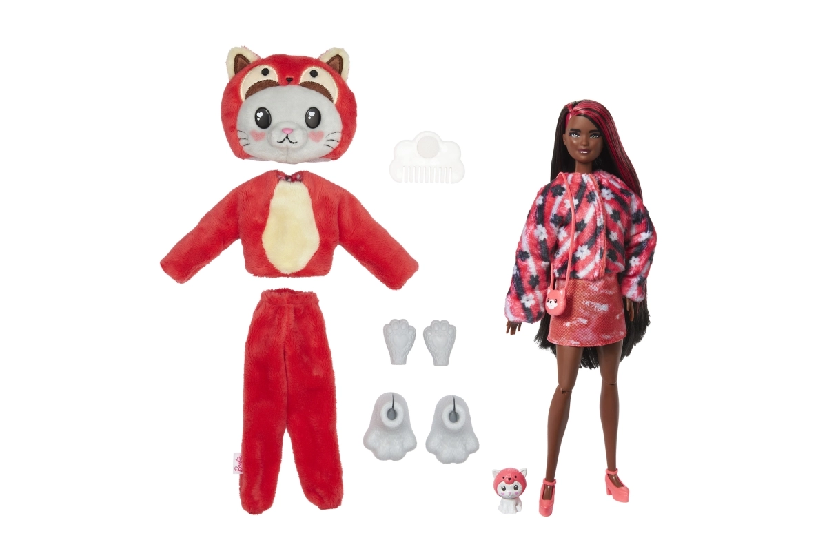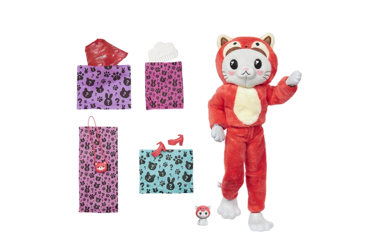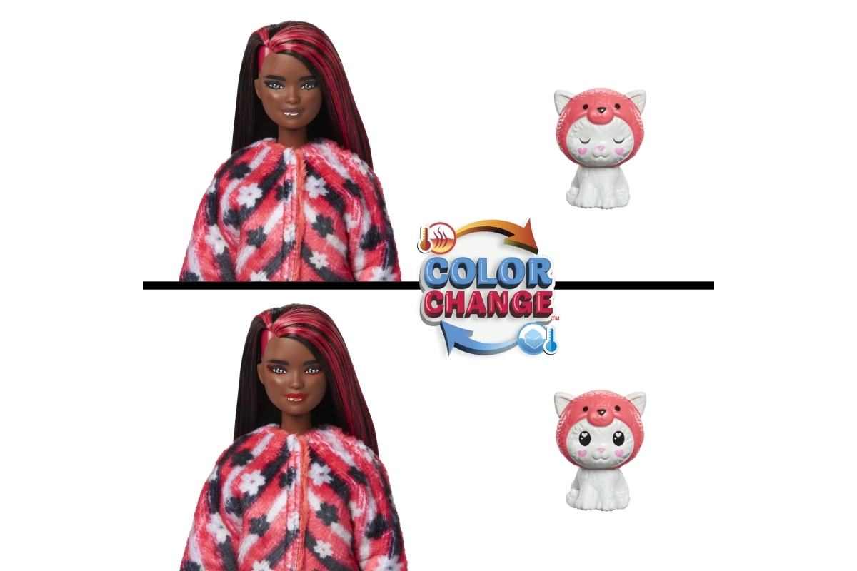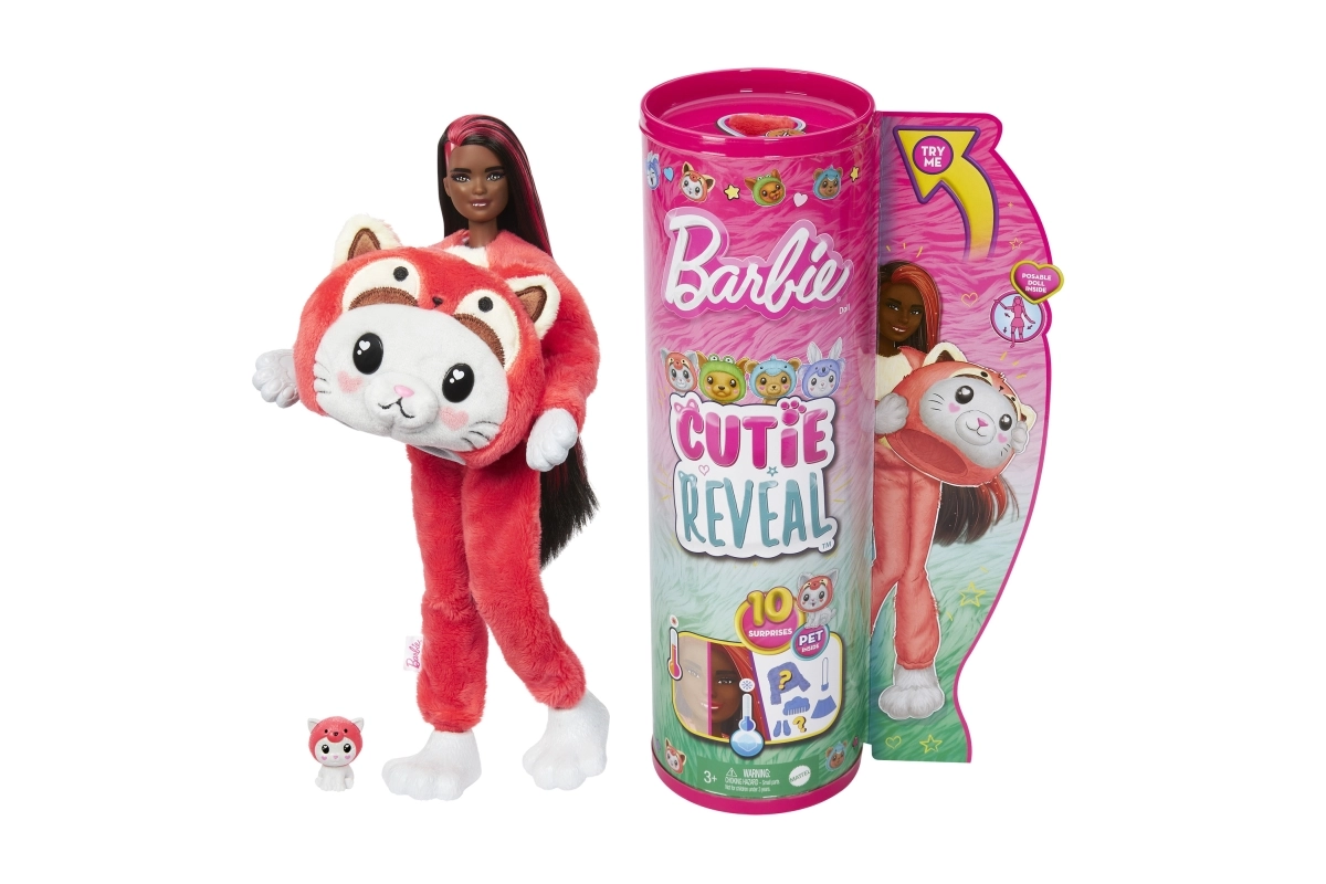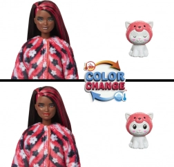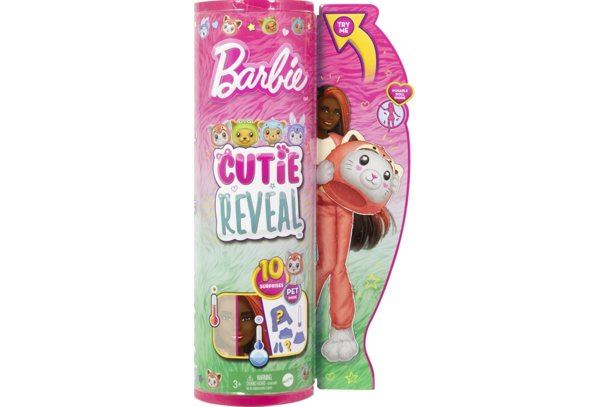 Objevte kouzelnou panenku Barbie Cutie Reveal v kostýmu koťátka červené pandy se 10 překvapeními pro nekonečnou zábavu. Po sejmutí kostýmu se ukáže kloubová panenka Barbie s dlouhými vlasy, módními doplňky a změnou barvy na obličeji i u mini zvířátka pomocí studené a teplé vody.