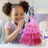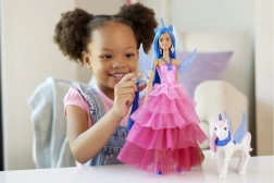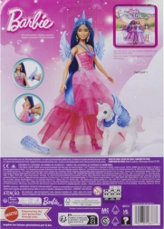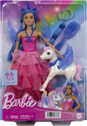 Oslavte 65. výročí BARBIE s kouzelnou sadou princezny a jejím alicornem! Lalka s dlouhými modrými vlasy, růžovými šaty a odnímatelnými křídly a ocasem přináší spoustu fantazie. Nechybí čelenka s rohem, stříbrné náušnice, stylové boty ani kartáč na česání. Součástí je i okřídlený jednorožec pro příběhy plné magie.
