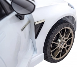 Pro maximální komfort jsou tu měkká EVA kola, která tlumí nerovnosti, a široké sedadlo z ekokůže s bezpečnostními pásy. Otevírací dveře, LED světla vpředu i vzadu a detailně zpracovaný interiér s volantem a panelem potěší malé řidiče i jejich rodiče. Hudbu přehrajete přes USB, MP3, Bluetooth nebo rádio, nechybí klakson a zvuková tlačítka na volantu.