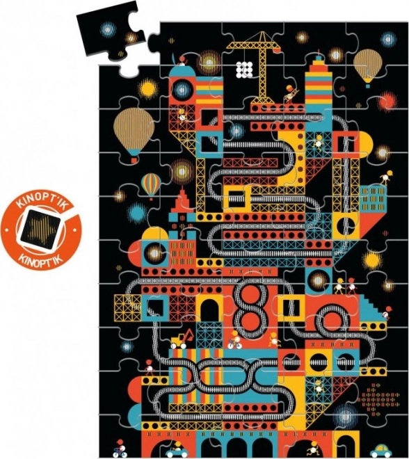Magnetické puzzle Djeco Kinoptik Město nabízí jedinečný zážitek z hraní: z magnetických dílků postavíte originální město a pomocí speciální fólie oživíte obrázek animovaným efektem. Ideální zábava pro děti, které milují skládání, experimentování a objevování optických klamů.