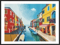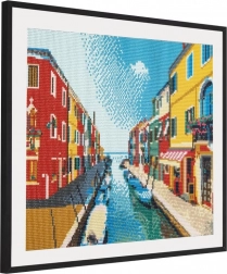 Diamantové malování je kreativní zábava pro každého – drobné barevné kamínky postupně umisťujete na předtištěné plátno pomocí aplikačního pera. Motiv romantického vodního kanálu vynikne třpytem kamínků a promění se v originální dekoraci vašeho domova.