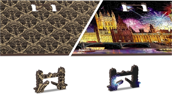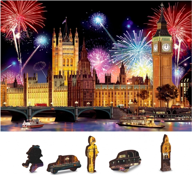 Přineste si kousek Londýna domů s fascinujícím dřevěným puzzle Noční Londýn 2v1. Tato skládačka obsahuje celkem 150 dílků, z nichž 30 je unikátně tvarovaných, zobrazujících ikonické stavby a symboly hlavního města Velké Británie. Při skládání se připravte na vyšší obtížnost díky různorodě tvarovaným dílkům, které představují výzvu i pro zkušené skládáče.