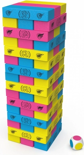 Kostka určuje barvu bloku, který musíš vytáhnout – jednoduché pravidlo, které dělá každé kolo napínavé a zábavné.