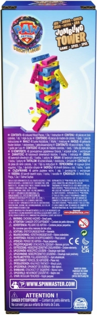 Vstupte do světa PAW PATROL s oblíbenou dovednostní hrou, kde rozhoduje klidná ruka a pevné nervy. Hráči střídavě vytahují dřevěné bloky ze spodní či střední části a pokládají je na vrchol – věž roste a spolu s ní i napětí. Barevná kostka s barvami bloků přináší jednoduché pravidlo a spoustu zábavy pro celou rodinu.