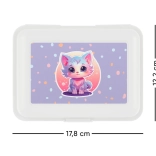 Stylový a funkční svačinový box BAAGL potěší děti veselým motivem i rodiče praktickým zpracováním. Víko s barevným potiskem kočičky vynikne na každém školním stole, zatímco pevná konstrukce z odolného plastu ochrání svačinu před pomačkáním.
