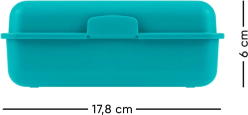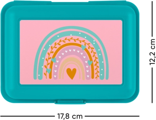 Udělejte si ze své přestávky stylový okamžik s naším boxem na svačinu Duha v tyrkysové barvě. Tento funkční plastový box je ideální pro každodenní použití díky jednomu zámkovému uzavírání a praktické vnitřní dělicí přepážce. Box je navržen tak, aby byl odolný a snadno přenosný, což ho činí skvělým pomocníkem pro školu i práci.