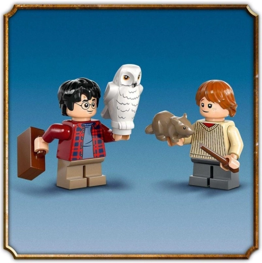 - Minifigurky: Harry Potter, Ron Weasley; figurky: Hedvika (sova), Prašivec (krysa)