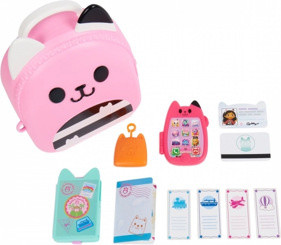 Skládací telefon na kočičí kartu, průkaz Gabi, kompasová přívěska, pas, jízdenky i peněženka – vše v seriálovém stylu pro maximální zážitek z hry.
