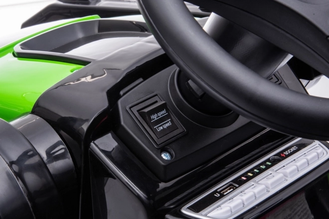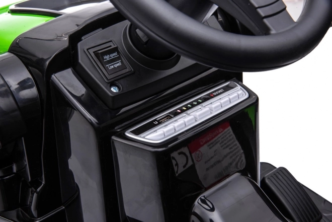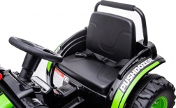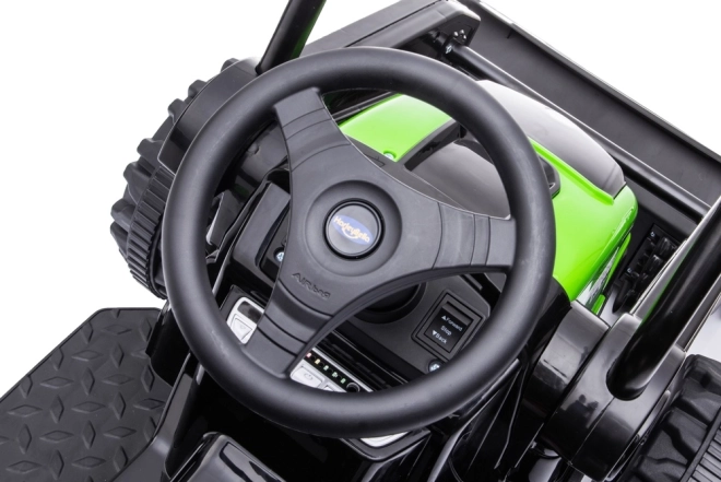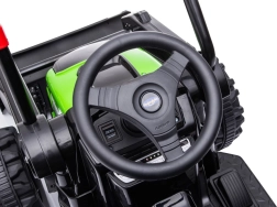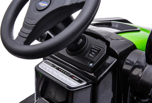 Traktor je vybaven dvojicí motorů s výkonem 35W, což poskytuje dostatečný výkon pro zábavné jízdy vpřed i vzad. Lze jej snadno ovládat pomocí dálkového ovladače a bezpečnostních pásů, čímž se zajišťuje maximální bezpečnost dětí. Zahrnuje také FM rádio, MP3 přehrávač a Bluetooth připojení pro hudební podkres hry.