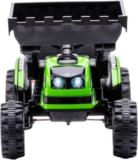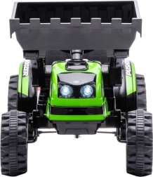 S rozměry 124 cm na délku včetně lžíce, šířkou 65 cm a výškou 65 cm, je tento traktor navržen tak, aby byl robustní a odolný. Díky EVA kolům a realistickému designu je vhodný pro jízdu na různých površích. Maximální nosnost 25 kg zajišťuje, že je traktor ideální volbou pro děti různého věku.