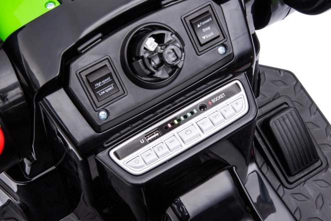 Traktor je vybaven MP3 přehrávačem, rádiem FM a Bluetooth, což umožňuje dětem přehrávat jejich oblíbenou hudbu přímo při hře.