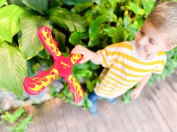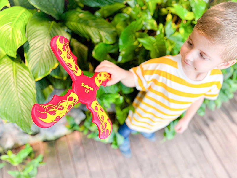 Díky odolnému materiálu a nápadnému designu je bumerang skvělý pro rodinné výlety, zahradu i park. Podporuje pohyb, přesnost a koordinaci oko‑ruka, a přitom zůstává zábavnou hračkou pro celou rodinu.