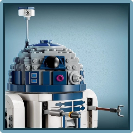 R2-D2 má otáčivou hlavu o 360°, vysouvací periskop, integrované nástroje a odnímatelnou třetí nohu pro „pojízdný“ režim – připraven na scénky ze STAR WARS i na výstavku.