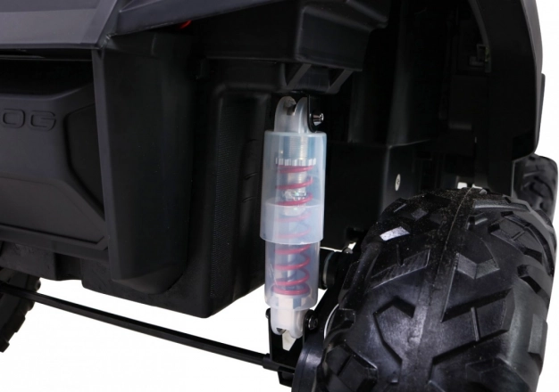 Bezpečnostní pásy a pohodlné sedadlo z ekokůže zaručují pohodlí a bezpečí. Autíčko obsahuje LED světla, která osvětlí cestu vpředu i vzadu, a navíc je vybaveno regulovatelným zadním odpružením pro snadné překonávání překážek.