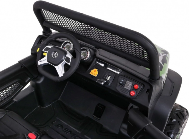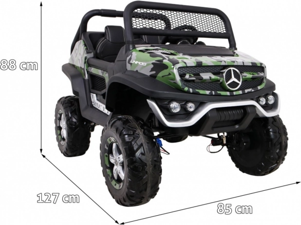 Unimog pro děti je vybaven čtyřmi silnými motory, které zajistí hladký provoz i na nerovných terénech. Díky paměti MicroSD, USB a Bluetooth může dítě během jízdy poslouchat svou oblíbenou hudbu.