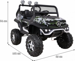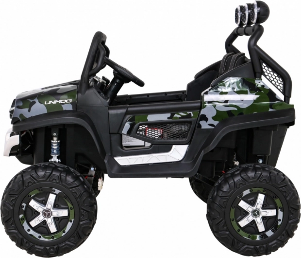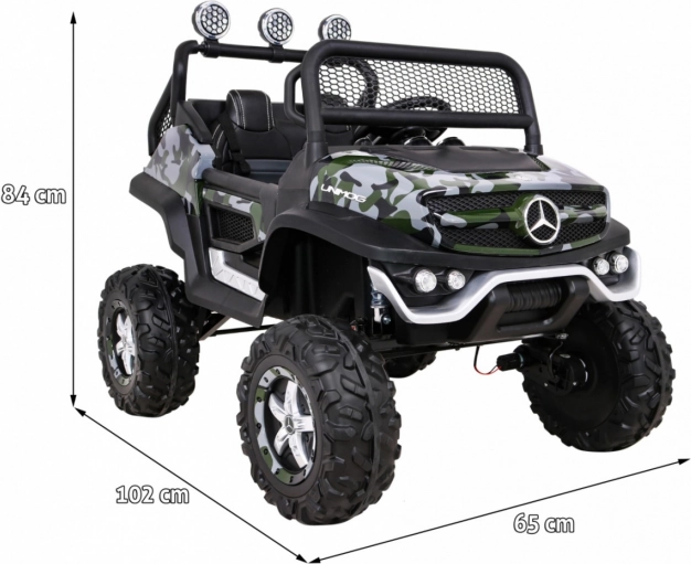 Představujeme Mercedes Benz Unimog pro děti, který kombinuje bezpečnost a zábavu. Toto dětské auto vyniká svou robustní konstrukcí, která je doplněna stylovými detaily inspirovanými skutečnými terénními vozy. Pohon 4x4 je vybaven čtyřmi motory o výkonu 35W, což dovoluje jízdu na pavé i hladké povrchy.