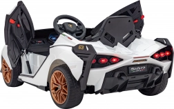 Elektrické autíčko Lamborghini Sian je navrženo pro maximální zábavu i bezpečí. Dva přední motory 18 W a dva zadní 35 W zajišťují plynulou a spolehlivou jízdu, zatímco plynulý start chrání dítě před cukáním při rozjezdu. LED světla vpředu i vzadu a ikonický design s výklopnými dveřmi vytvářejí autentický vzhled superauta.