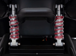 - Komfort a stabilita: EVA kola, odpružení, široké sedadlo z eko kůže.