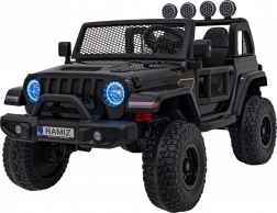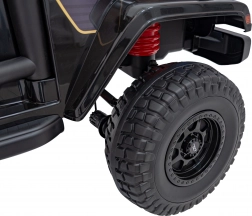 Silné dětské terénní auto OFF-ROAD 3.0 nabízí čtyři motory 4×35 W, výkonnou baterii 12 V 14 Ah a pohodlný měkký start pro plynulé rozjezdy. Velká EVA kola, dálkové ovládání 2,4 GHz se STOP tlačítkem, otevírací dveře, dvojité sedadlo z ekokůže a bohaté LED osvětlení zaručí bezpečnou a zábavnou jízdu. Audio panel s MP3/USB/AUX a vestavěnými melodiemi potěší malé řidiče.