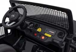 Rodiče ocení bezpečné dálkové ovládání 2,4 GHz se 3 rychlostmi a nouzovým tlačítkem STOP. Děti zaujme podsvětlený start, LED světla vpředu i vzadu a multimediální panel s MP3, USB a AUX. Dvě sedadla z ekokůže se soběstačnými pásy nabídnou pohodlí i při delší jízdě.