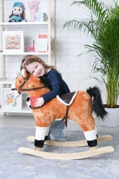 Koník nabízí zábavné zvukové efekty, které dětem zpestří hru a podpoří jejich představivost. Ovládání je jednoduché a přirozené i pro malé ruce.