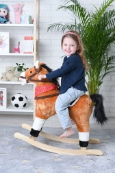 Interaktivní houpací koník z plyše spojuje měkký, příjemný materiál s pevnou konstrukcí pro bezpečné a pohodlné houpání doma. Jednoduché ovládání zvuků podporuje imaginativní hru a přirozeně motivuje děti k pohybu.