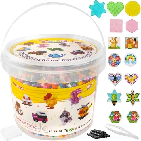 Tato bohatá sada zažehlovacích korálků je ideální pro domácí tvoření i do školek. V balení najdete 5000 korálků v deseti základních barvách, praktické šablony a doplňky, díky nimž děti snadno vytvářejí pestré obrázky, postavičky i zvířátka. Přidáním více vrstev lze tvořit i 3D modely. Lehké a kompaktní balení v uzavíratelném kbelíčku umožňuje snadné přenášení i skladování.