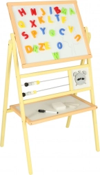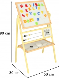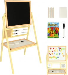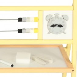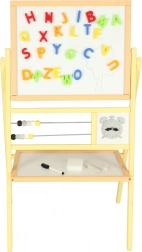 Součástí balení jsou také křídy, mazák, magnetická liga a fixy. Tato tabule podporuje rozvoj manuálních schopností, logického myšlení a kreativity dětí.