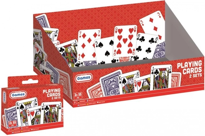 Tyto hrací karty typu francouzského typu jsou perfektní pro hraní kanasty, žolíků, bridže, pokeru nebo pasiánsu. Balení obsahuje 2 sady po 55 kartách, což umožňuje velkou flexibilitu při hraní. Každá karta má rozměr přibližně 8,5 x 5,5 cm, což zajišťuje pohodlnou manipulaci a jasnou čitelnost hodnot.