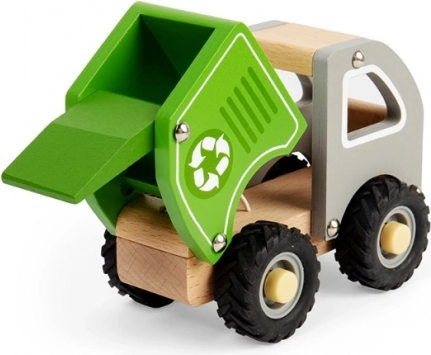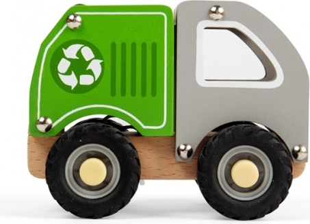 Tento dřevěný recyklační vůz má vynikající design, který podporuje dětskou představivost a kreativitu. Je vyroben z FSC® certifikovaného dřeva a malován netoxickými barvami, což z něj činí bezpečnou a ekologickou volbu. Tichá gumová kolečka zajišťují plynulý pohyb na různých površích, zatímco pohyblivé části dávají hračce interaktivní charakter.